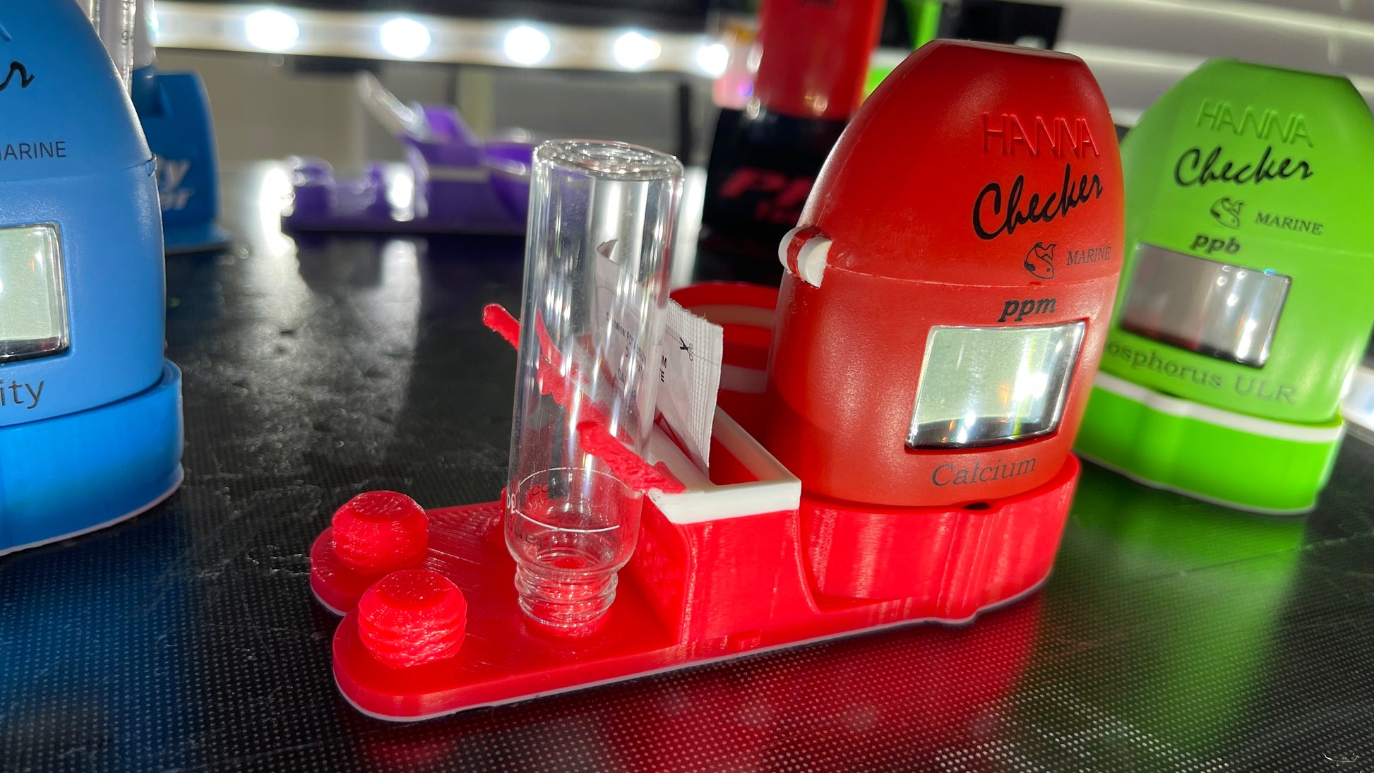 RhinosReef the 3D printed calcium test kit organizer for Hanna Instruments Calcium checker, is a compact and efficient storage solution for your calcium testing equipment. Designed specifically for the components of the calcium test kit, this organizer keeps everything neatly organized and readily accessible. The precise 3D printing ensures a secure fit for each item, preventing any potential damage or loss. Simplify your calcium testing routine with this convenient organizer from Hanna Instruments, ensuring that your testing equipment is always within reach and in perfect order.